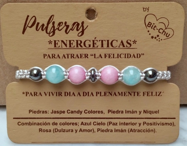 Pulsera Energética para atraer " La Felicidad " - Combinación de Piedras: Jaspe Candy Azul Cielo ( Paz interior, positivismo ) Jaspe Candy Rosa ( Dulzura y Amor ) Piedra Imán Atracción ( Acerina ) y separador Nikel * PARA VIVIR DIA A DIA PLENAMENTE FELIZ *