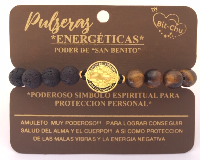 Pulsera Energética " Poder de San Benito " Combinación de Piedras ; Lava Volcánica Negras ( Poder, Protección Energía ) Ojo de Tigre Café ( Estabilidad y Responsabilidad ) Medalla de San Benito, Símbolo Espiritual de Protección, y Piedra Imán Atracción ( Acerina ) y separador de Nikel * PODEROSO SÍMBOLO ESPIRITUAL, PARA PROTECCIÓN PERSONAL *