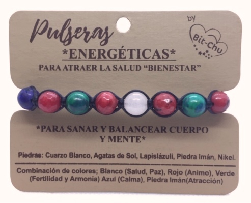 Pulsera Energética para atraer Salud y Bienestar. Combinación de Piedras: Cuarzo blanco ( Salud, Paz ), Ágatas Rojas ( Ánimo ), Ágata verde ( Fertilidad y Armonía ), y Lapislasuli azul ( Calma ), piedra imán Atracción ( Acerina ) y separador de Nikel * PARA SANAR Y BALANCEAR CUERPO Y MENTE *